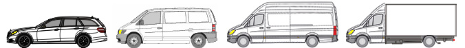 Mercedes Sprinter kassevogn med lastlængde på 4,7 meter.